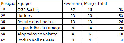 Murilo manteve a liderança do campeonato ao fazer uma prova regular e chegar na segunda posição. Seu companheiro de equipe Giovanne teve vários problemas em seus karts (estatísticas dão conta de que ele tentou andar em mais ou menos uns 30 carrinhos diferentes, todos ruins) e acabou abandonando. O desconfiado Laurence, mostrou que seu desempenho subiu bastante em relação ao ano passado, conseguindo o terceiro lugar. Ou talvez seja a necessidade de compensar o fato de que seu companheiro de equipe Estevão desapareceu do mapa.